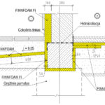 Ekslpoatuojamo stogo apšiltinimo detalė. Terasa ant perdangos. Finnfoam fi/drain