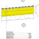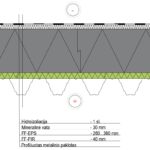 Plokščio stogo ant profiliuotos skardos pakloto apšiltinimo detalė