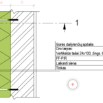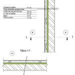 Sienos sujungimo su stogu, kai šilumos izoliacija dedama virš gegnių apšiltinimo detalė ii. Pjūvis 1-1